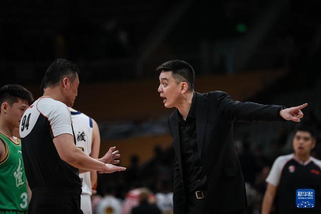 12月15日,辽宁本钢队主教练杨鸣(右)在比赛中对判罚提出质疑。新华社记者 潘昱龙 摄